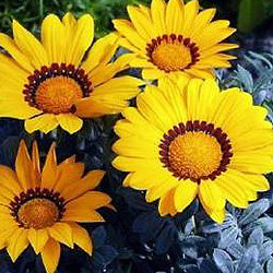 Газания Фрости Кисс (Gazania rigens Frosty Kiss). Самая раннецветущая и наиболее однородная серия с серебряными листьями, представленная на рынке.