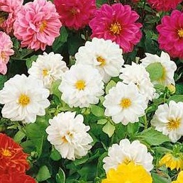 Георгина гибридная Фигаро (Dahlia x hybrida Figaro) - серия карликовой георгины с махровыми цветками и плотными компактными кустиками.