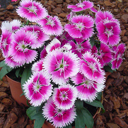 Гвоздика гибридная Чиба (Dianthus interspecific Chiba).  Межвидовой гибрид гвоздики серии Чиба(Chiba) имеет суперраннее цветение и очень компактный и в то же время густой мощный куст.