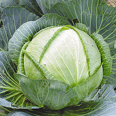 • Кочан округлый, плотный, массой 3-4 кг, на разрезе беловатый.