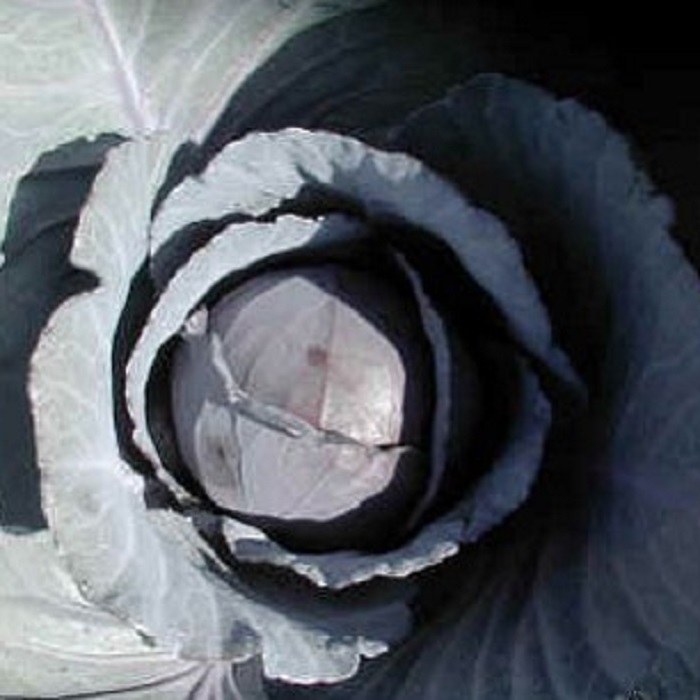• Кочан среднего размера, округлый, частично покрытый, плотный, на разрезе фиолетовый, внутренняя структура средняя