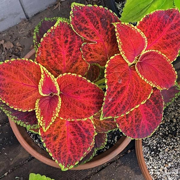 Колеус Джиант Эксибишен (Coleus blumei Giant Exhibition™) - серия колеусов высотой до 50 см с хорошим ветвлением и большими широкими листьями.
