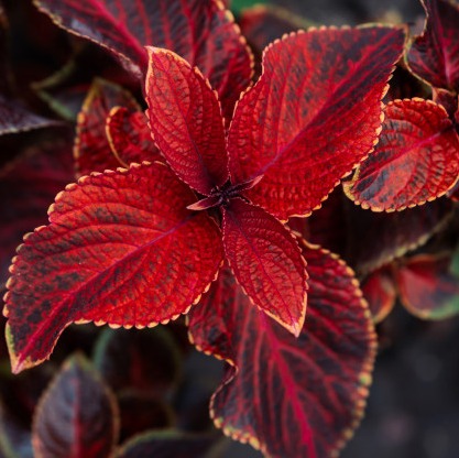 Колеус Суперфайн Рейнбоус F1 (Plectranthus scuttelarioides Superfine Rainbow F1) -  полукарликовая серия колеуса, вырастает до 35 см в высоту.
