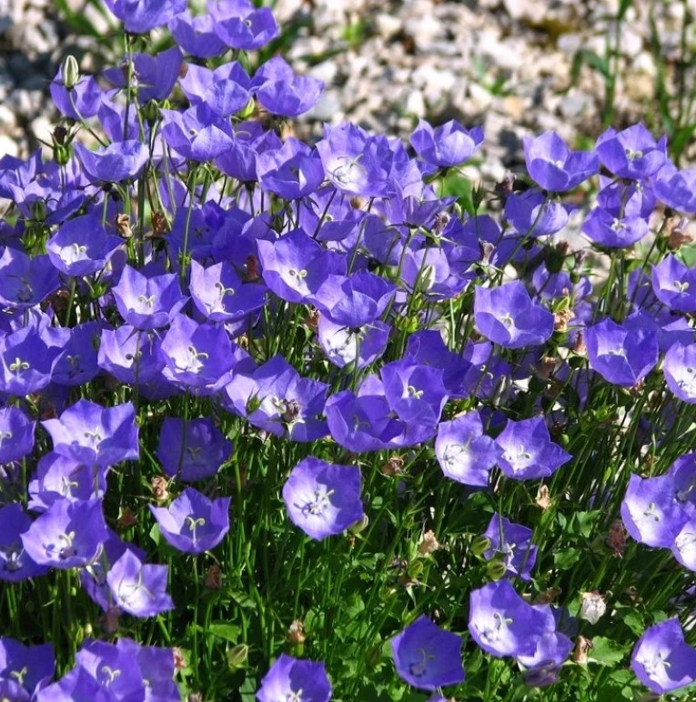 Колокольчик карпатский Голубой. Цветки голубые, воронковидно - колокольчатые, одиночные. Сеют с шагом 15 - 20 см на рассаду в ящики весной, либо осенью в открытый грунт, растет на одном месте до 6 лет.