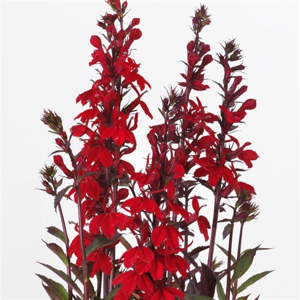 Лобелия прекрасная Старшип (Lobelia x speciosa Starship). Оригинальный многолетник с декоративной листвой, формирующий колос с яркими многочисленными цветками.
