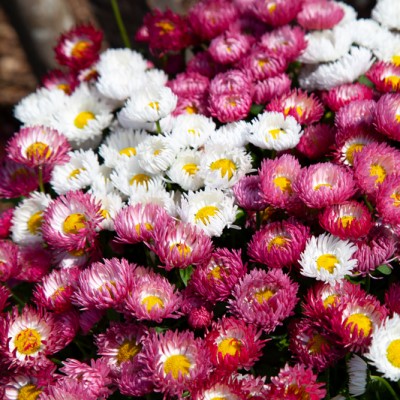 Маргаритка Бам Бам (Bellis perennis Bam Bam) -  уникальная серия маргариток с крупными густомахровыми соцветиями, естественным компактным габитусом и не вытягивающимися побегами.
