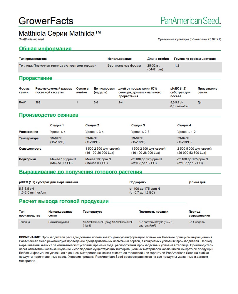 Маттиола Матильда. Самая однородная серия на рынке срезочной маттиолы по габитусу и срокам выращивания.