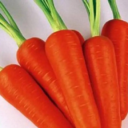 • Корнеплоды слегка конической формы, длиной 20 см, гладкие, насыщенного оранжево-красного цвета, с маленькой сердцевиной.