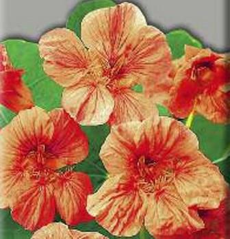 Настурция низкорослая Везувий. Куст шарообразный, высотой до 40 см. Листья темно-зеленые. Цветы розово-лососевые, расположены поверх листьев. Цветет обильно с июля по октябрь. Используют для бордюров, рабаток, укрытия склонов, балконных ящиков.