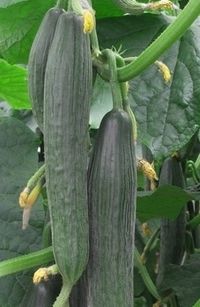Огурец Церес F1. Гибрид для выращивания в светокультуре в зимних теплицах. Партенокарпический, салатный. В плодоношение вступает на 40 день после полных всходов. Плоды удлиненно-цилиндрической формы с короткой шейкой, гладкий, темно-зеленый, ребристость средняя, длина 33 см.