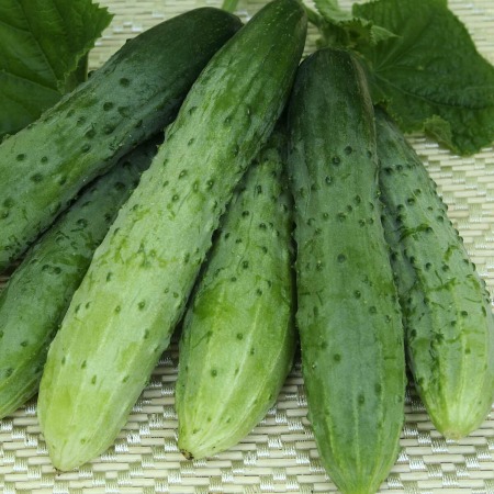 • Зеленцы ровные, крупнобугорчатые, веретеновидной формы, с тонкой вытянутой шейкой (внешне похожи на кегли), длиной 15 – 22 см, диаметром 4 — 4,5 см, массой 180 – 220 г. Кожица темно-зеленая, с белыми полосками до трети плода. Опушение редкое, сложное. Шипы белые.