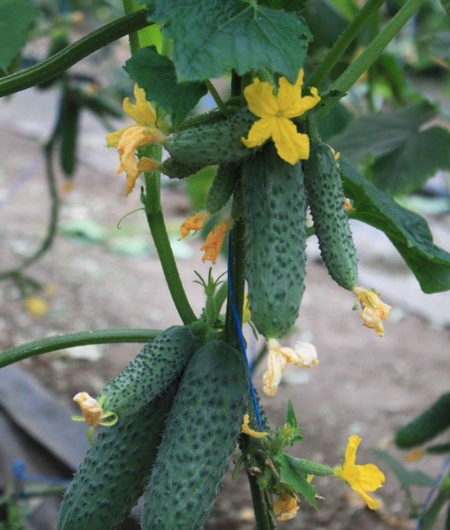 • Зеленец темно-зелёный, полосы отсутствуют. Форма огурцов веретеновидная, с крупными бугорками. В длину достигают 12–14 см.