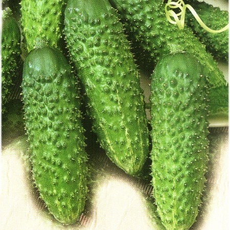 • Зеленец цилиндрической формы, длиной 12-14 см, зеленый, с короткими полосами, крупнобугорчатый с шипами.