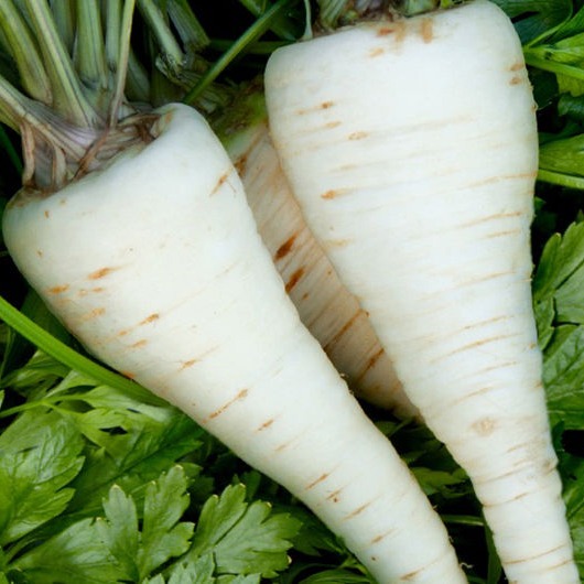 • Корнеплод средний, обратнотреугольной формы, белый.