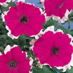 • Компактный  сильноветвистый кустик обильно усыпан бархатистыми цветками (7,5-8,0 см в диаметре) яркого оттенка с контрастным белым ободком по волнистому краю.