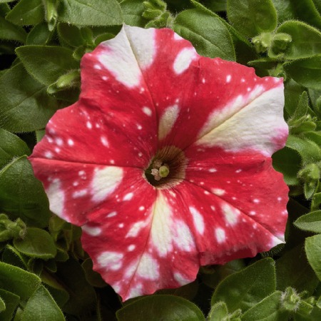 Петуния многоцветковая Дот Стар (Petunia multiflora nana Dot Star). Петуния с цветками ярких насыщенных окрасок и белыми пятнышками.