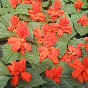 Сальвия сверкающая Дварф ред.  Растение высотой 20-25 см густооблиственное. Соцветия густые многочисленные красные. Цветет обильно с конца июля до заморозков. Используют для рабаток, бордюров, парадных клумб.