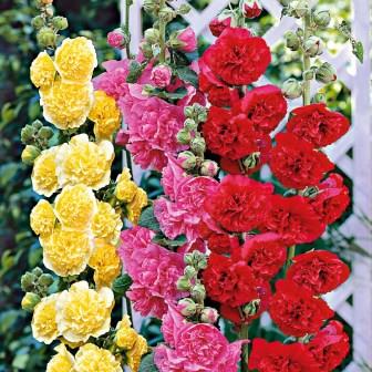 Шток-роза Смесь окрасок. Стебель мощный, ветвистый, высотой 200 см. Крупные махровые и полумахровые цветки разнообразной окраски собраны в длинные кистевидные соцветия. Цветет в июле-сентябре. Используются для небольших групп на газоне, миксбордеров, декорирования стен, заборов и на срезку.