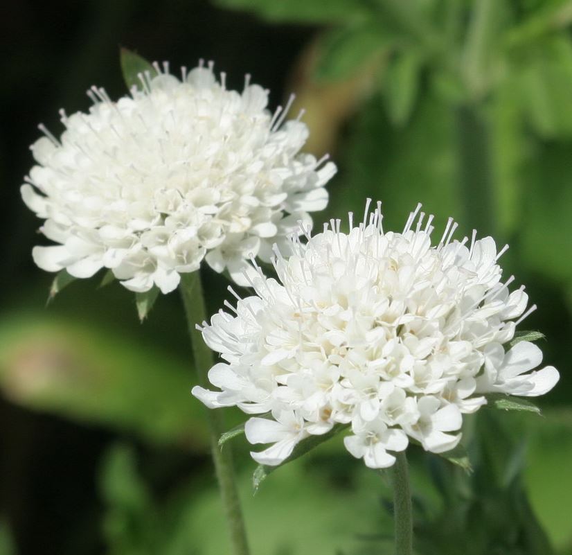 Скабиоза темно-пурпурная Вайт. Стебли прямые, ветвистые, 80-90 см высотой. Пушистые крупные соцветия, диаметром до 6 см, на длинных цветоносах. Цветет с июля по октябрь. Используют в группах, рабатках, миксбордерах и на срезку. Срезанные цветы сохраняются в воде 5-7 дней.