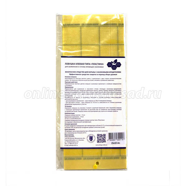 Клеевая ловушка изготовлена из пластика желтого цвета с нанесенным с двух сторон энтомологическим клеем. Не токсична и безопасна для растений, человека и домашних животных.