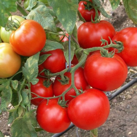 Томат Санрайз F1. Гибрид имеет широкий спектр устойчивостей к заболеваниям, характеризуется отличным качеством продукции, стабильностью урожая, длительностью плодоношения.Ранний гибрид.Созревает через 62 - 64 дня после пересадки.Норма высева, Га: 28-30 тыс.Гибрид включен в Госреестр для выращивания в открытом грунте в ЛПХ. Салатный. Раннеспелый. Растение детерминантное. Лист среднего размера, светло-зеленый до зеленого. Соцветие промежуточное. Плодоножка с сочленением. Плод плоскоокруглый, ребристый, плотный. Окраска незрелого плода зеленая, зрелого - красная. Число гнезд 4 и более. Масса плода 161-180 г. Вкус отличный. Урожайность товарных плодов 4,0 кг./кв.м. Устойчивость - Устойчив к вертициллезному (V-1, Verticillium wilt) и фузариозному (Fusarium wiltraces 1 и 2) (расы 1,2) увяданию. Альтернариозный рак стебля (ASC, alternaria stem cancer). Серая пятнистость листьев (St, Stemphylium, gray leaf spot). Гибрид пригоден для продаж на свежем рынке, а также для переработки и длительного хранения.