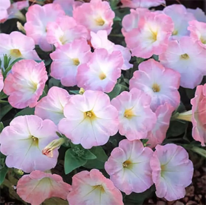 Петуния гибридная Трилоджи. Трилоджи(Trilogy) - новая серия гибридных ампельных петуний каскадного типа! Плети не наращивает, остается компактной. В рассаде не требует прищипки, кустик сам выпускает боковые побеги. У растения очень короткие междоузлия и обильное цветение, весь сезон она выглядит как " шарик " усыпанный цветами. Цветы яркие, на солнце не выгорают! Устойчива к дождю. Композиции с ней настолько привлекательно выглядят, что даже в массе горшков она притягивает взгляд.