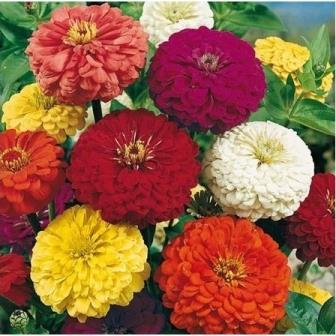 Цинния георгиноцветковая Супер йога. Растение крупное, высотой около 90 см. Соцветия большие полушаровидные, красивых чистых окрасок. Цветет с июля по сентябрь. Используют для оформления цветников, рабаток и срезки.