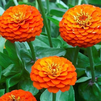 Цинния лиллипут Оранжевая. Распространенное засухоустойчивое неприхотливое растение, образующее разветвленные кустики 45-50 см высотой. Соцветия многочисленные, небольшого диаметра, махровые. Цветет обильно, с июля до октября. Используют в клумбах, рабатках, группах и для срезки.