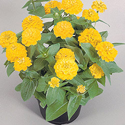 Цинния Циннита Еллоу. Хороши для выращивания в горшках и контейнерах, пригодны для реализации рассады в течение лета. Соцветия махровые помпонные (диаметр 3-5 см), желтые, оранжевые, розовые, ярко-красные и белые.