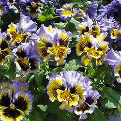 Виола крупноцветковая Фризл Сизл (Viola x wittrockiana Frizzle Sizzle) - это многократно улучшенный гибрид виолы сорта Рококо, обладающий невиданной гофрированностью. Результат многолетней работы американских селекционеров над улучшением характеристик цветка, сроков цветения и габитуса растений, по сравнению с другими сериями виол.
