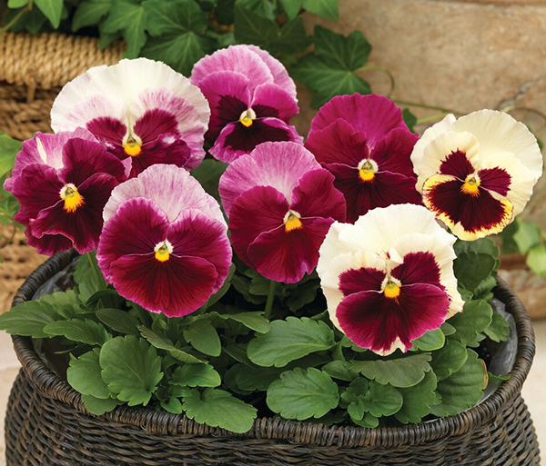 Виола крупноцветковая Карма F1 (Viola x wittrockiana) - это сильнорослая виола, с хорошо разветвленными растениями и крупными цветками.