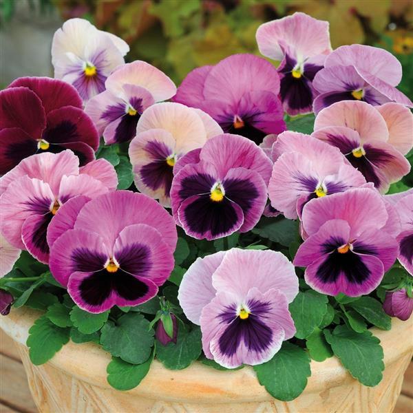 Виола крупноцветковая Матрикс (Viola x wittrockiana Matrix). Серия крупноцветковых гибридных виол с диаметром цветка до 9 см.